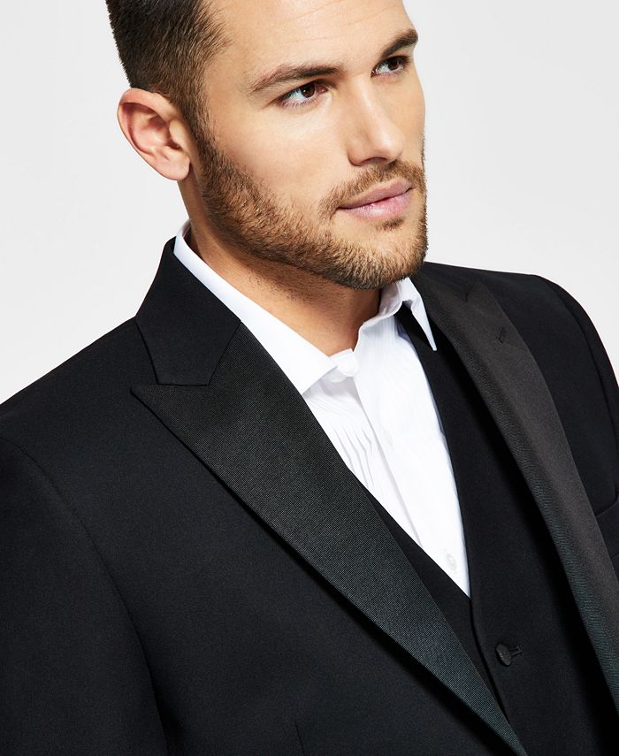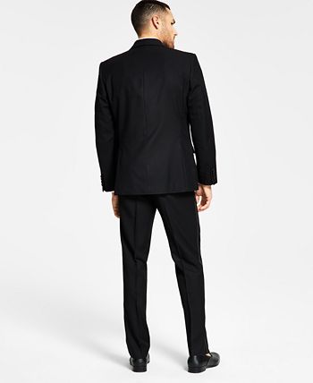 Make sure your style shines at your next sophisticated soirée with the crisp classic lines and shimmering peak lapel of this comfortable stretch suit jacket from Alfani.