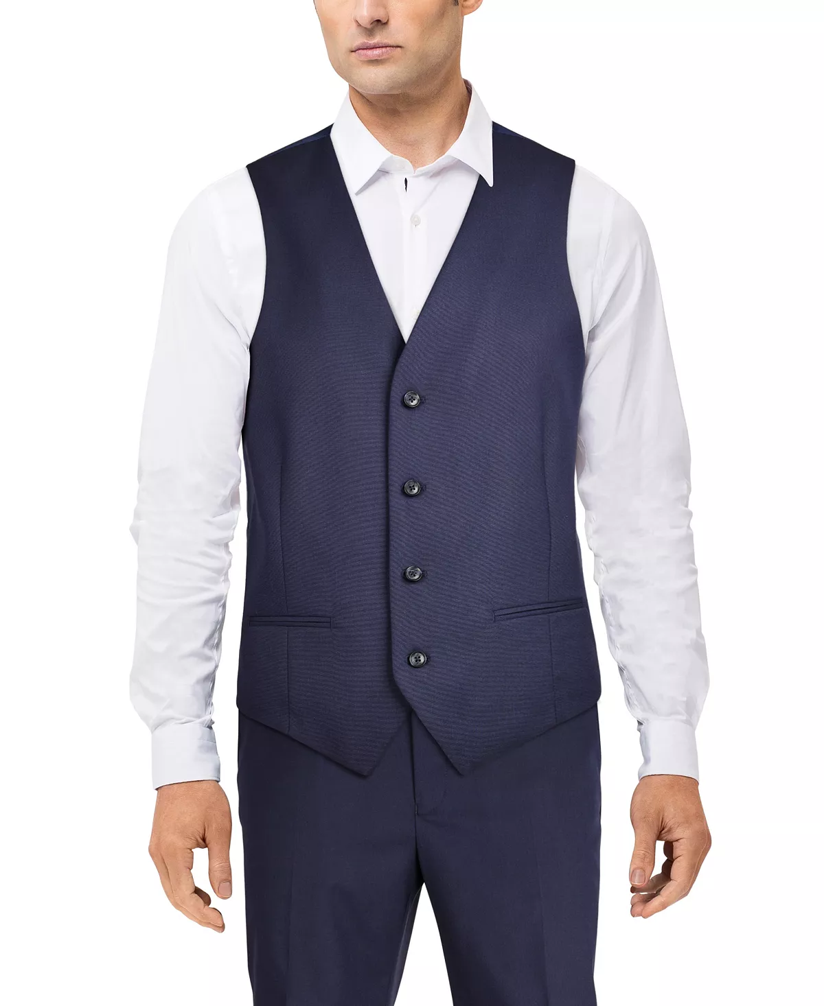 Refresh your formal look with the clean lines and polished black tone of this classic-fit suit vest from Alfani.