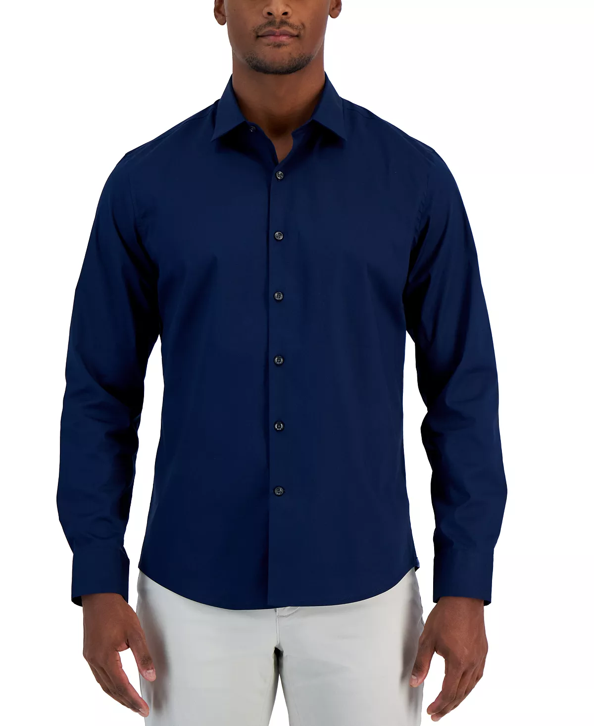 Level up your comfort for casual days with the unrestrictive stretch fabric of this Modern button-down shirt from Alfani.
