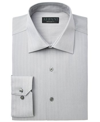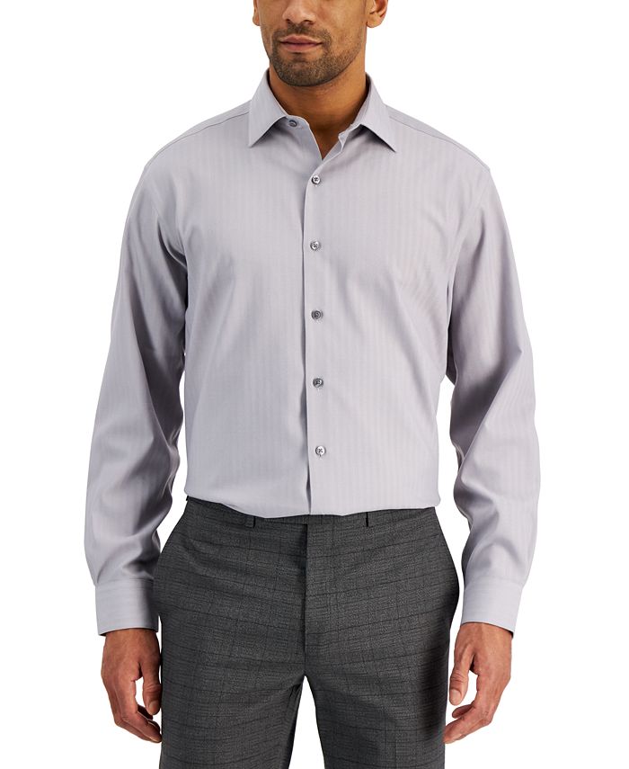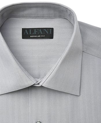 Designed to fit right in with your hectic days and never lose its composure, this herringbone dress shirt from Alfani features wrinkle-resistant, stretch fabric that helps regulate your temperature.