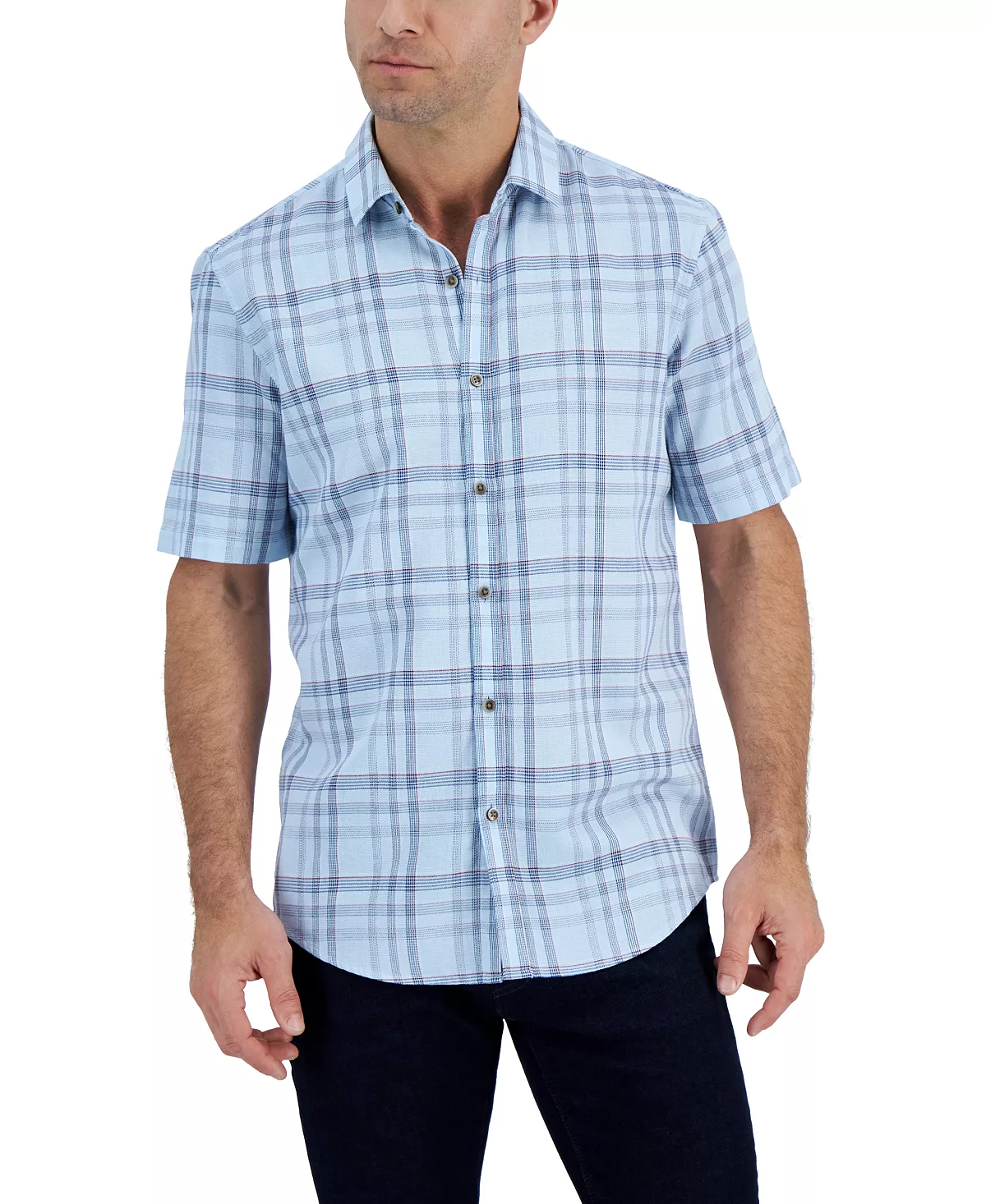 Signature style starts here with Alfani’s classic button-down, designed with short sleeves and a textured fabrication.