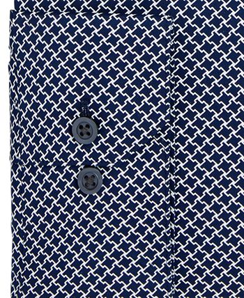 The geometric puzzle print motif of this slim-fit Alfani dress shirt can lend your ensemble an edgy look while its performance stretch qualities provide the comfort you desire.