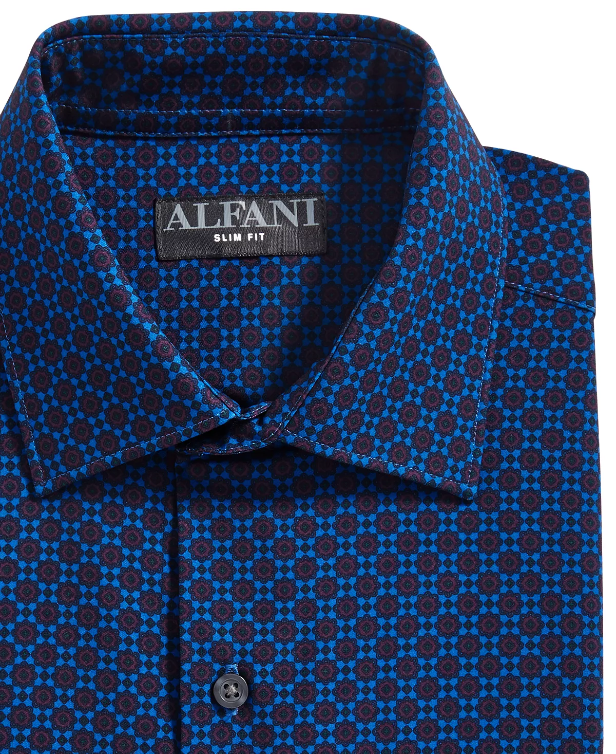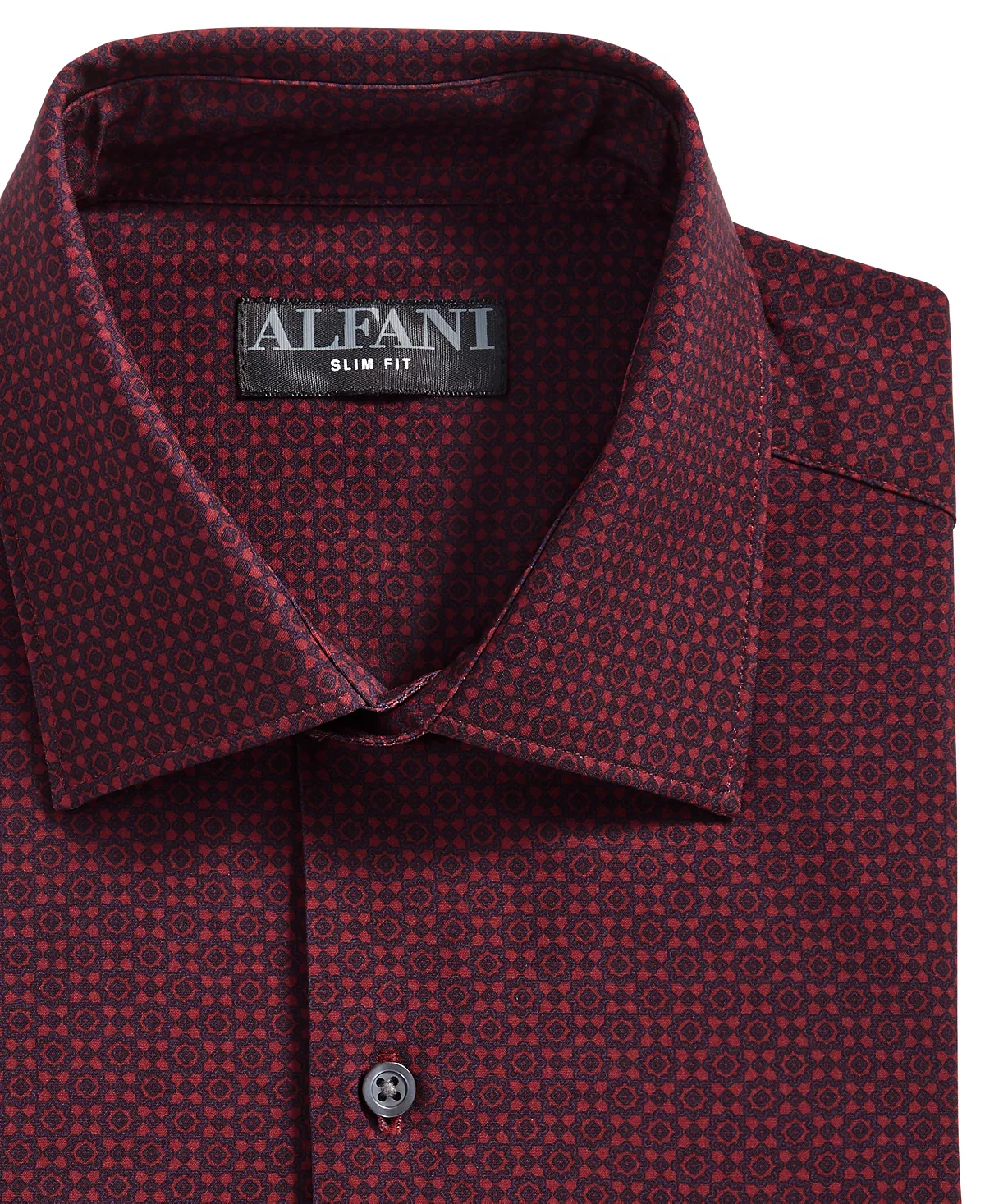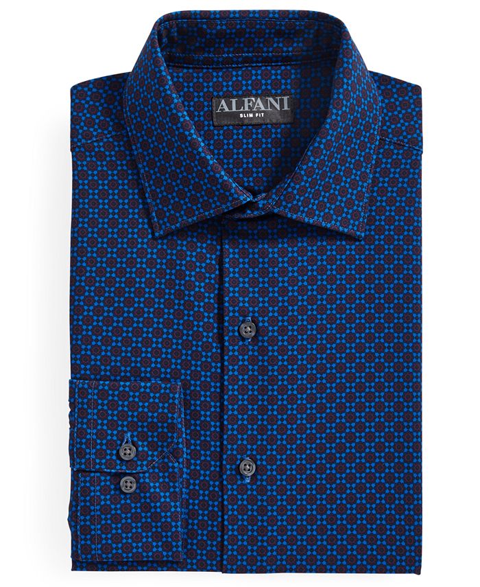 Stride into your next event or meeting with total confidence in this slim-fit dress shirt from Alfani, equipped with iron-free stretch fabric that wicks away sweat for unbeatable max comfort.