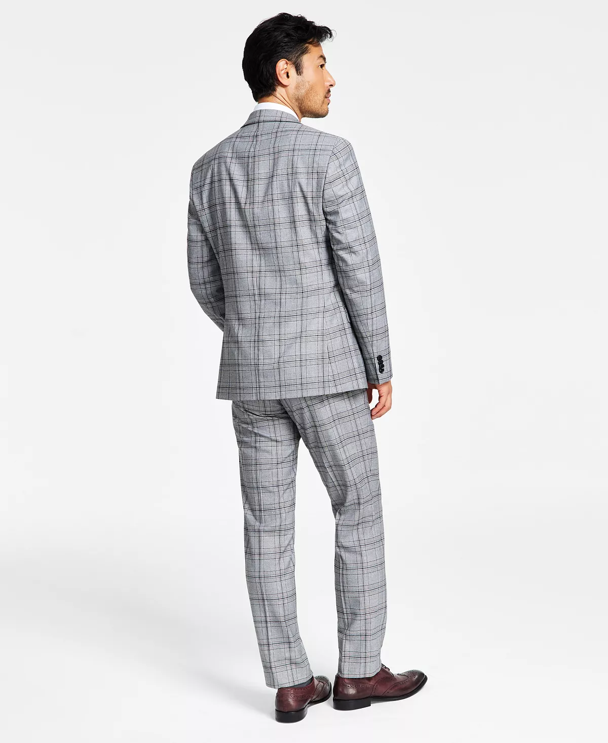 A charming allover plaid pattern gives these slim-fit suit pants and jacket from Alfani the level of modern style you’ve been searching for.