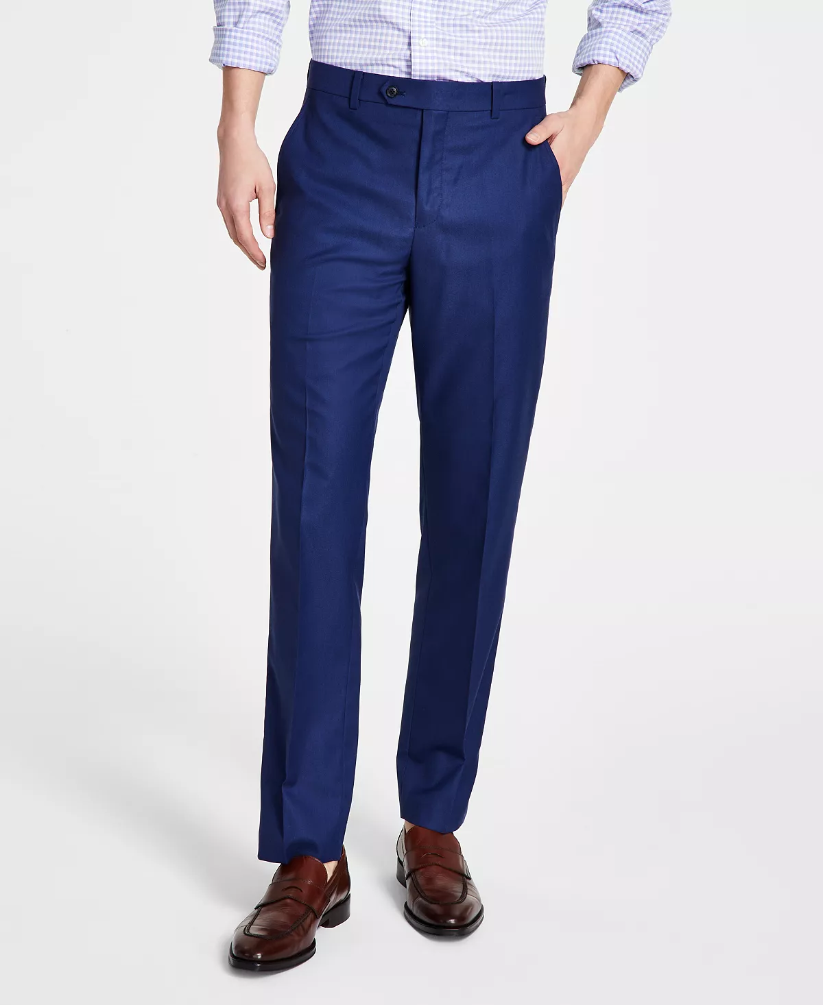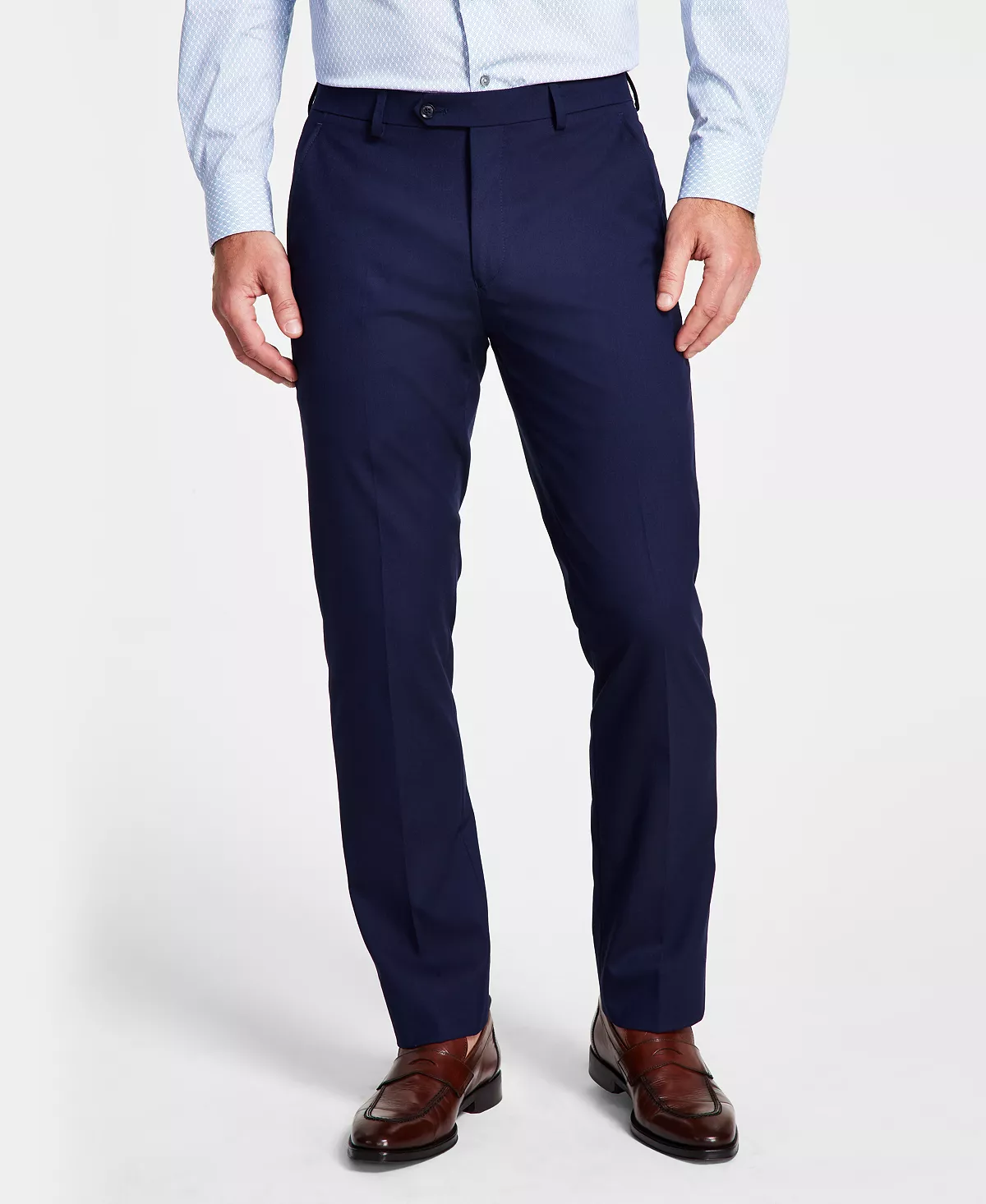 Bring a whole new dimension of style and comfort to work or the weekend with the streamlined tailoring and unrestrictive stretch performance of these versatile navy blue suit pants from Alfani.