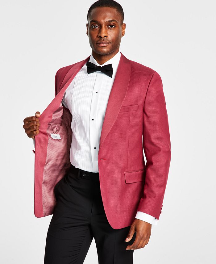 Be modern in your elegant evening style with the handsome tailored cut and subtle patterning of this shawl collar tuxedo jacket by Alfani.
