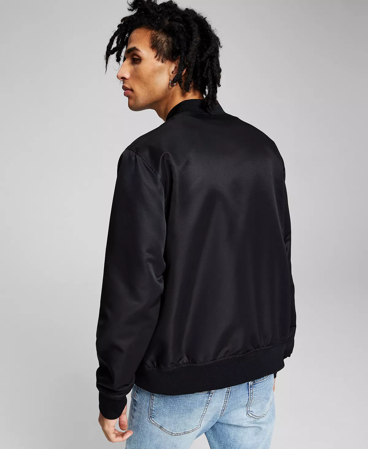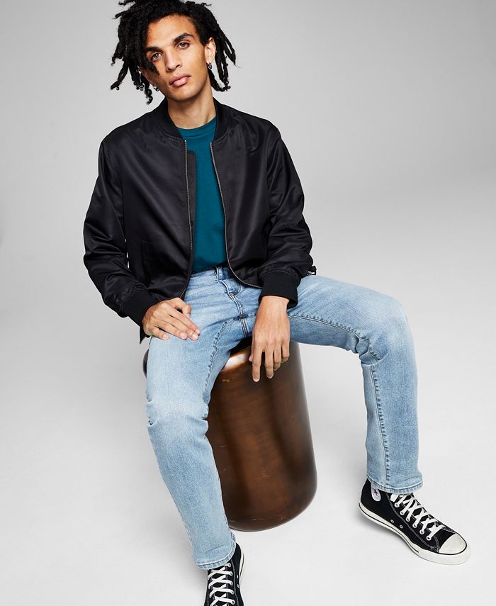 And Now This seamlessly combines comfort and style with the modern skinny fit stretch denim, lightweight updated bomber jacket, and soft slub knit henley shirt of this handsome ensemble.