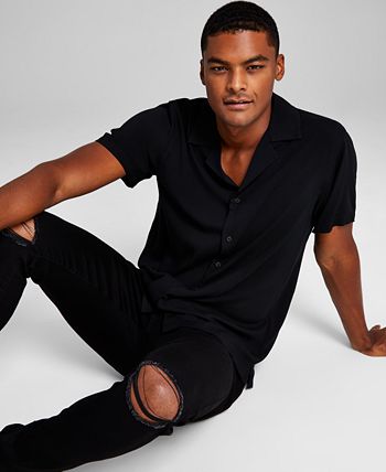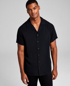 Reflect a more vacation-minded look with the classic camp collar and soft feel of this solid short-sleeve button-up shirt by And Now This.