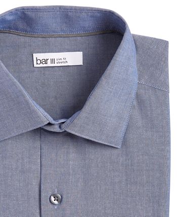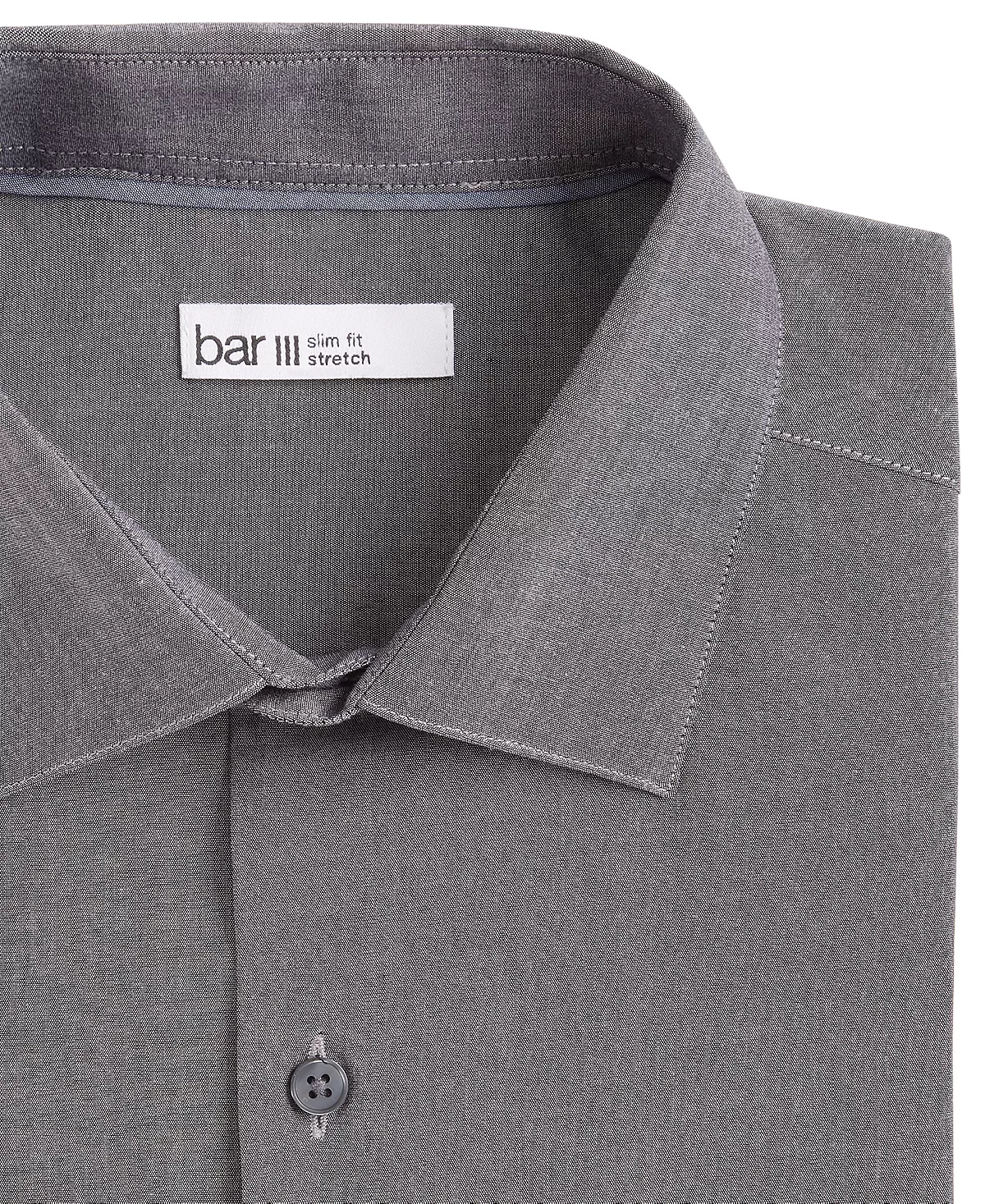 Designed for a look that works untucked or tucked, this slim-fit dress shirt from Bar III comes complete with a smoldering chambray pattern that adds visual depth and sophistication to your button-down.