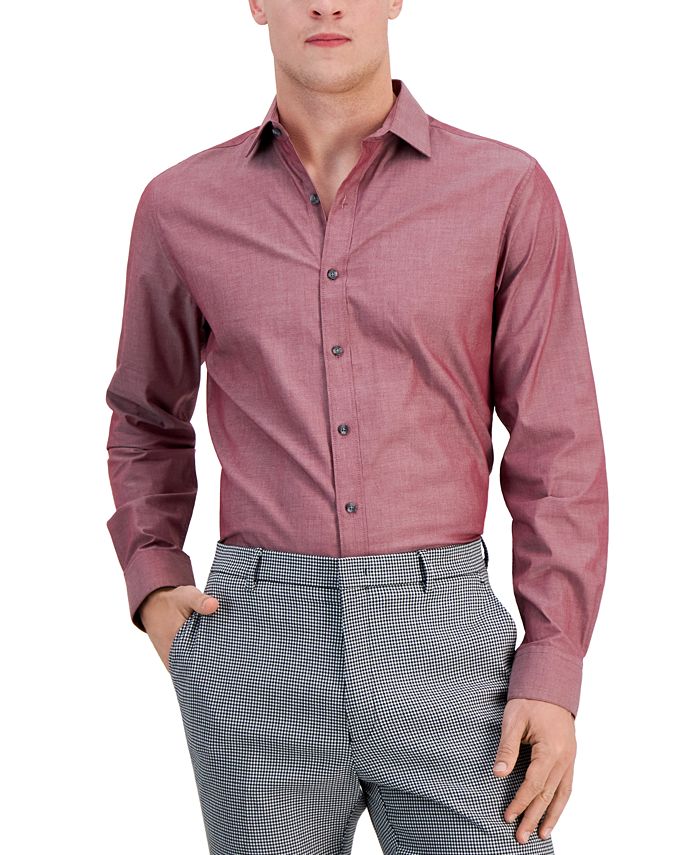 Designed to rest comfortably at the hips for an untucked, casual look, Bar III’s chambray button-down gives you the comfort of all-cotton stretch fabric alongside a breezy spread collar.