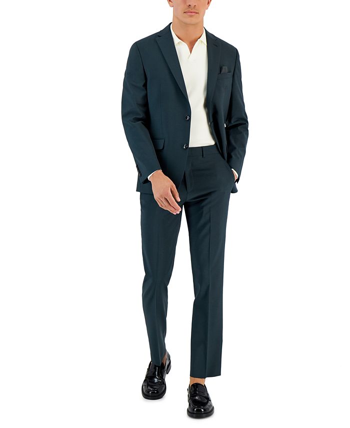 Bar III showcases superior style with the Men’s Slim-Fit Emerald Green Suit Separates, featuring suit pants and jacket.