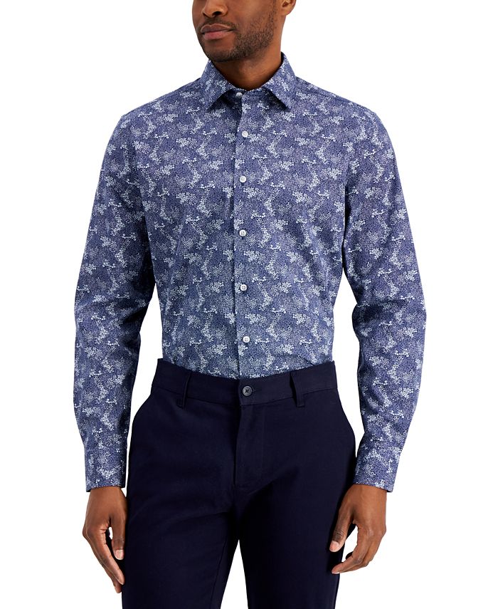 Bar III caters to your more fashion-forward, bold side with the lush allover floral print of this tailored stretch dress shirt.