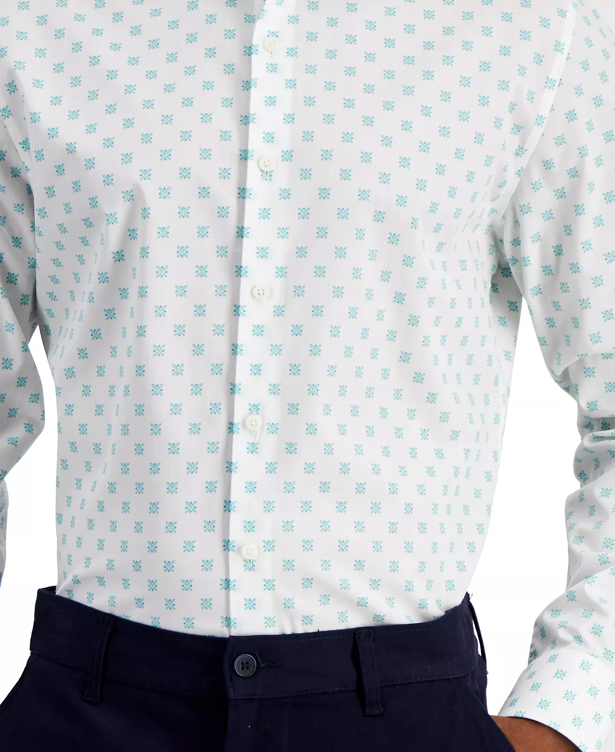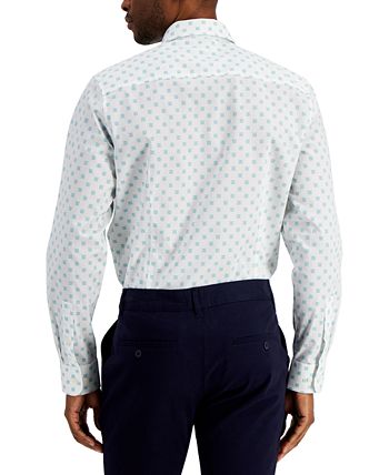 A simple medallion print on the slim tailored body of this Bar III stretch dress shirt makes it ideal for both professional and evening settings.