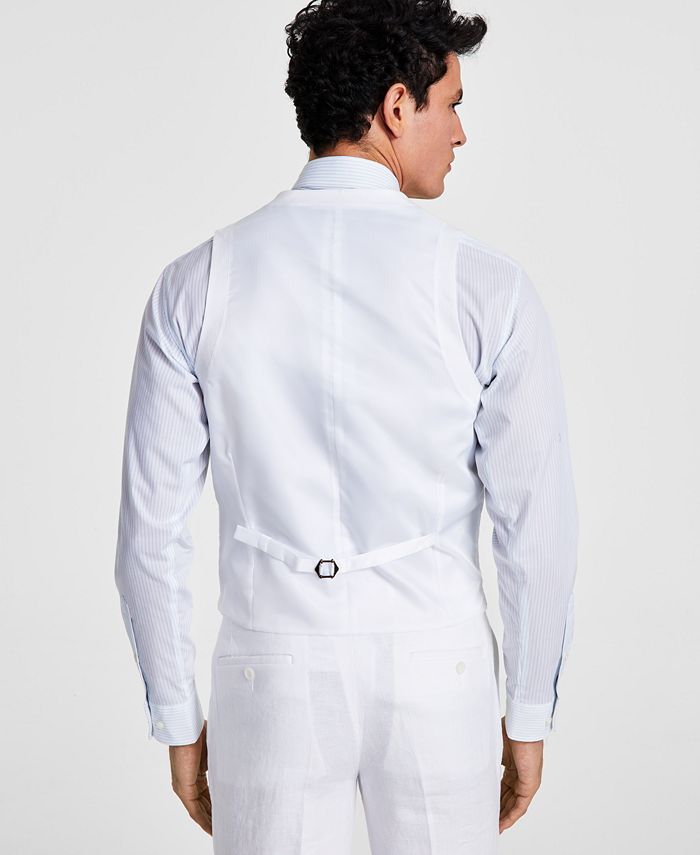 Refresh your refined look with the stylish slim fit and crisp linen of this textured suit vest from Bar III.