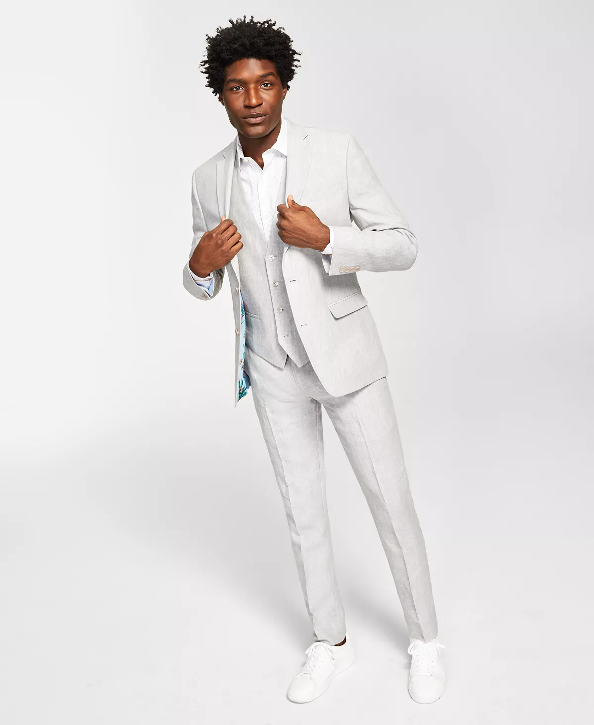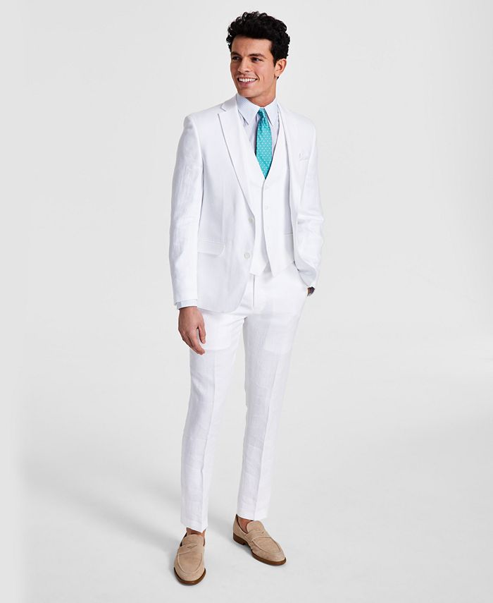Refresh your refined look with the stylish slim fit and crisp linen of these textured suit separates from Bar III.