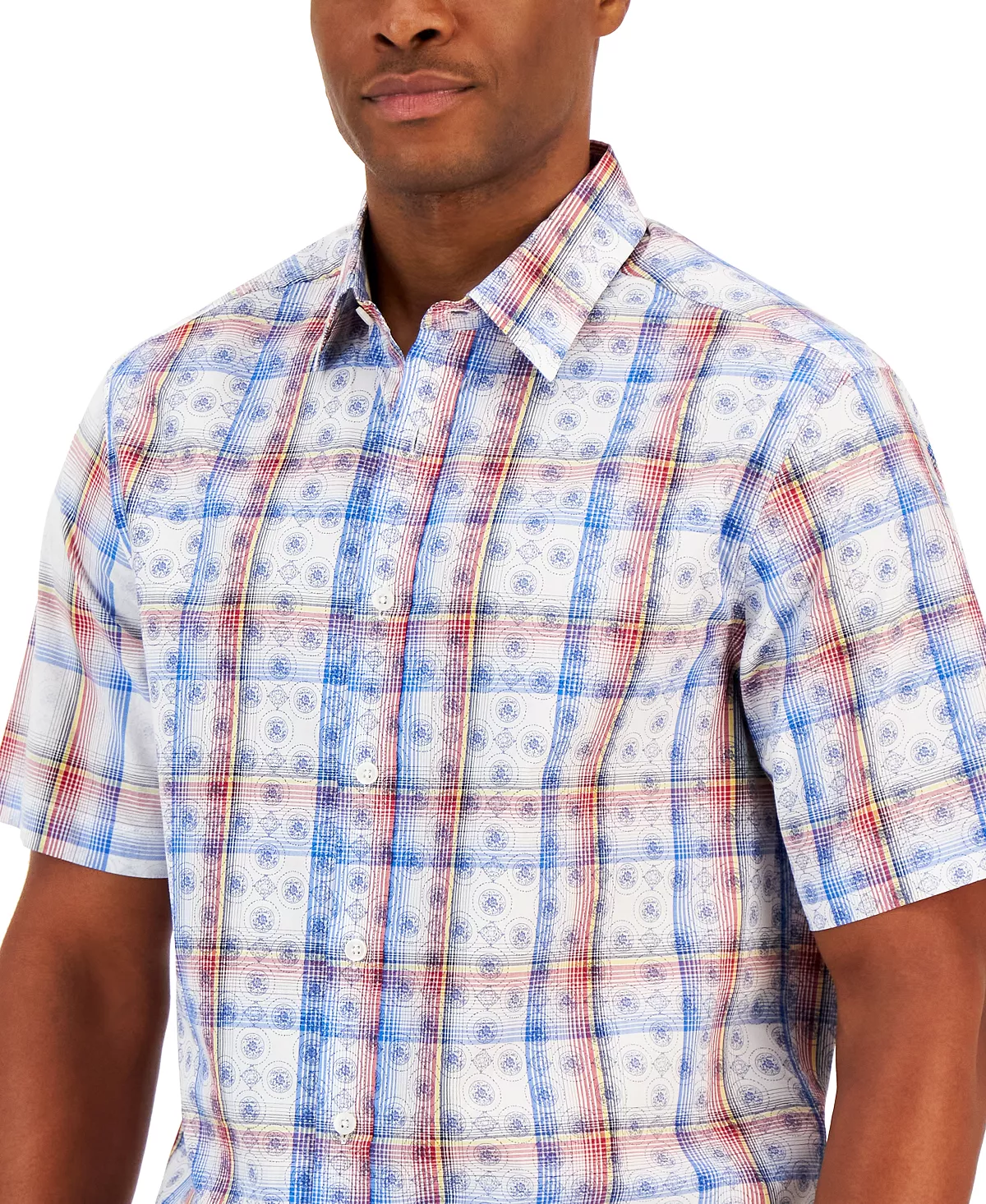 You’ll never have to worry about having nothing good to wear as long as you have this plaid & geo pattern short-sleeve shirt from Club Room in your closet.