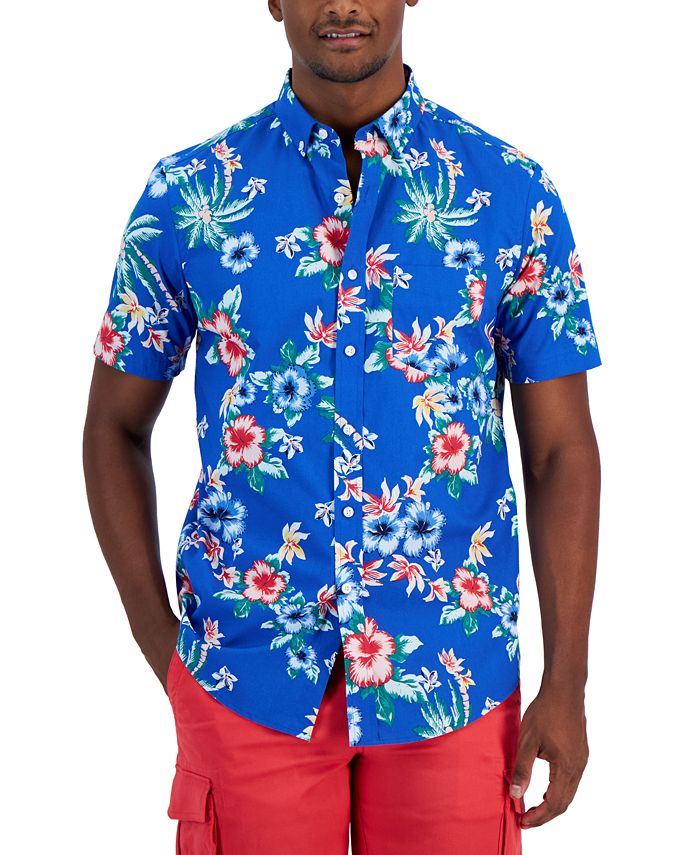 Enjoy the casual comfort of this short-sleeve shirt from Club Room, featuring button-down styling and a tropical print.