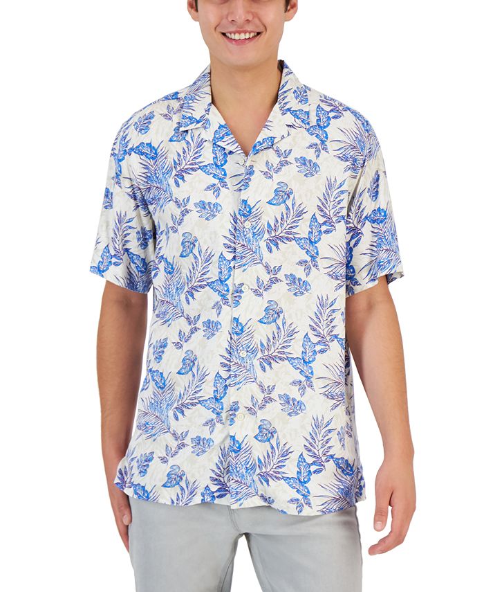 Club Room elevates casual style with the subtle sophistication of this silk button-down, designed with a point collar and modern print.