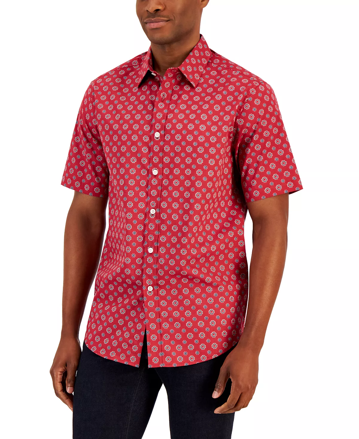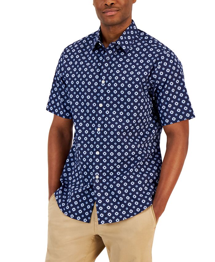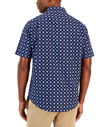 The softness and comfort of pure cotton make this Club Room shirt a must-have, while the charming medallion print makes it gotta-have.