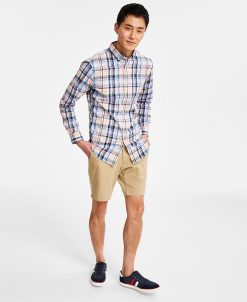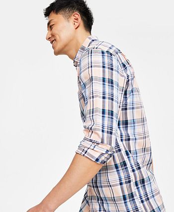 The classic plaid of this Club Room long-sleeve button-up poplin shirt is rendered in brisk tones for a fresh, modern styling appeal.