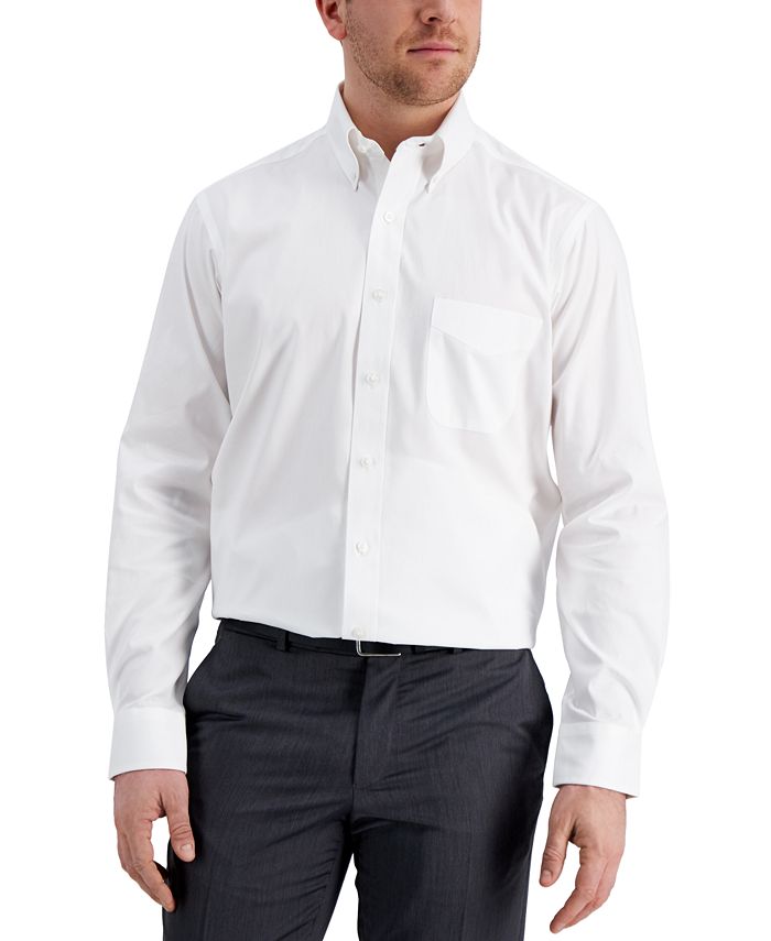 Club Room presents a staple for any modern male wardrobe with the soft cotton finish, crisp white-tone and versatile button-down collar design of this exceptionally versatile and comfortable dress shirt.