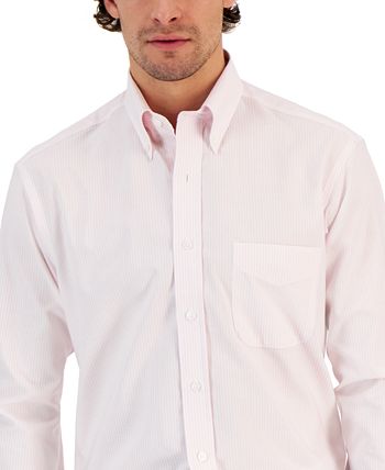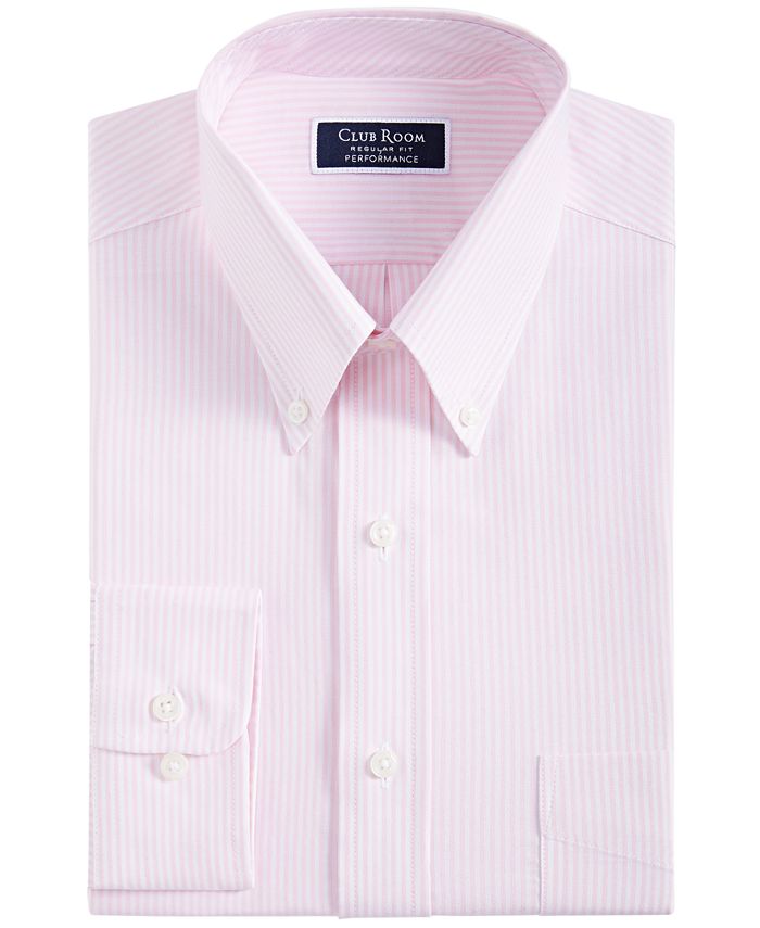 Go for a classic look with the casually refined button-down collar and soft-tone stripes of this Club Room dress shirt. Its stretch design and crisp cotton finish complement its looks with enduring comfort.