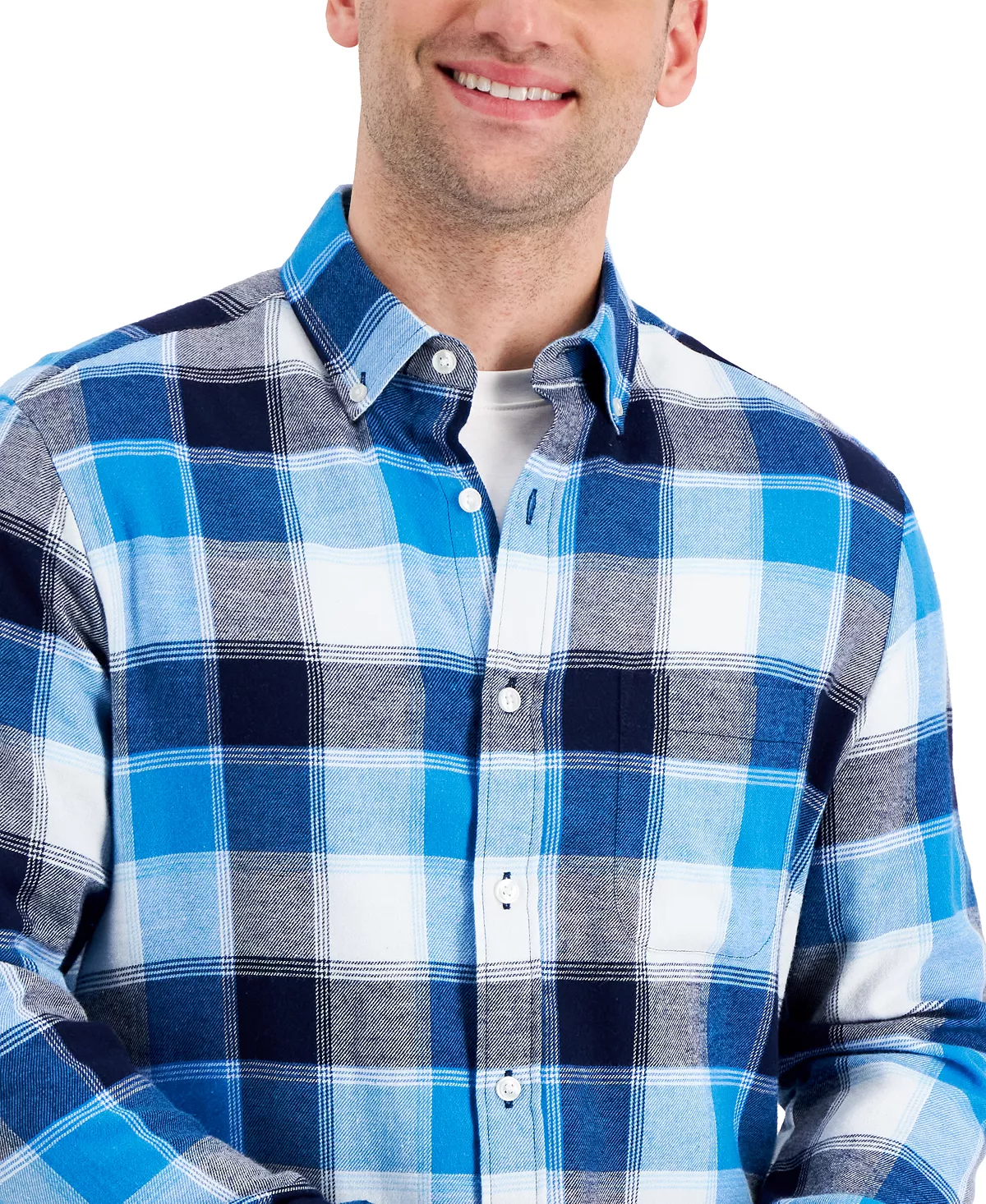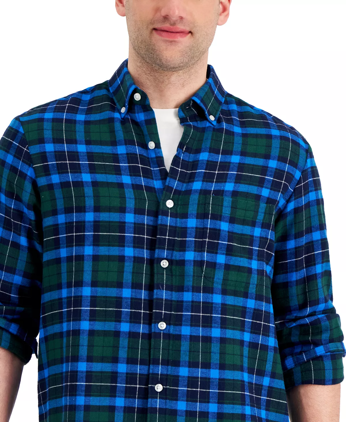 Classic plaid patterns a soft cotton flannel to complete your cool-weather look with this handsome button-down from Club Room.