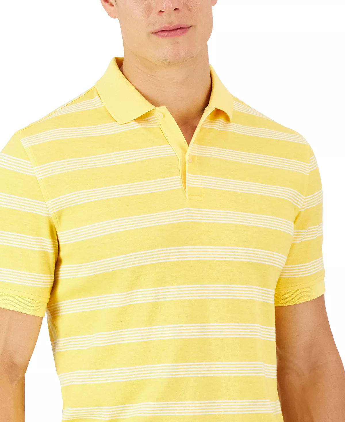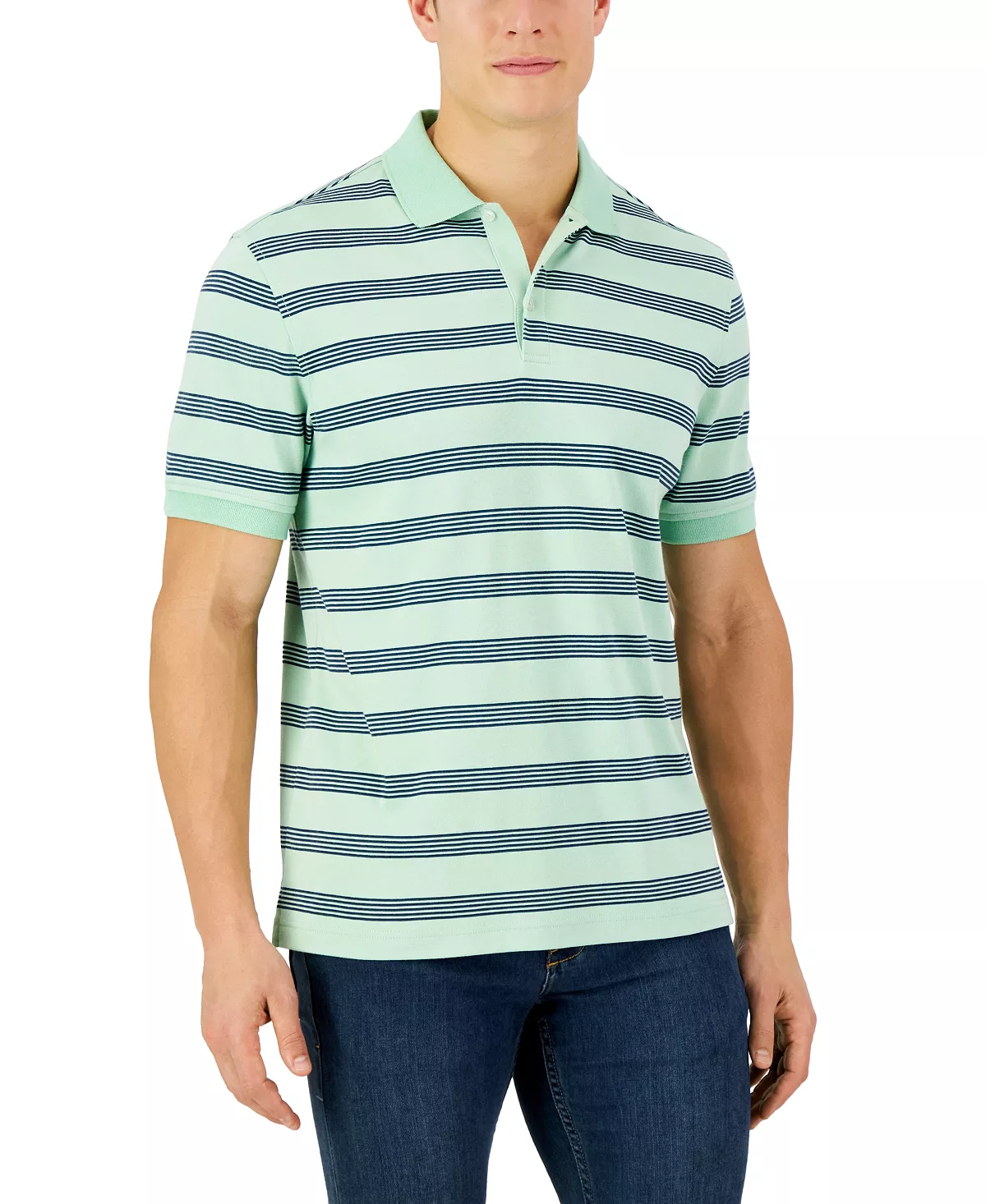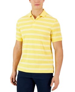 A short-sleeve polo from Club Room, showcasing a retro stripe design, regular fit and soft knit fabrication.