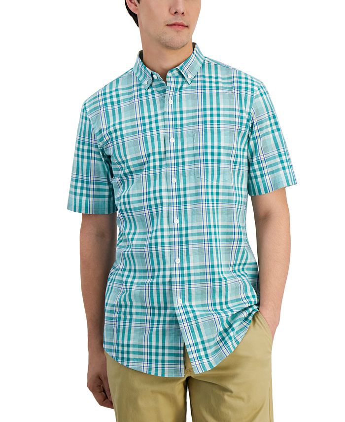 Take your look to the next level with the refreshing tonal plaid featured on this Rob poplin shirt from Club Room.