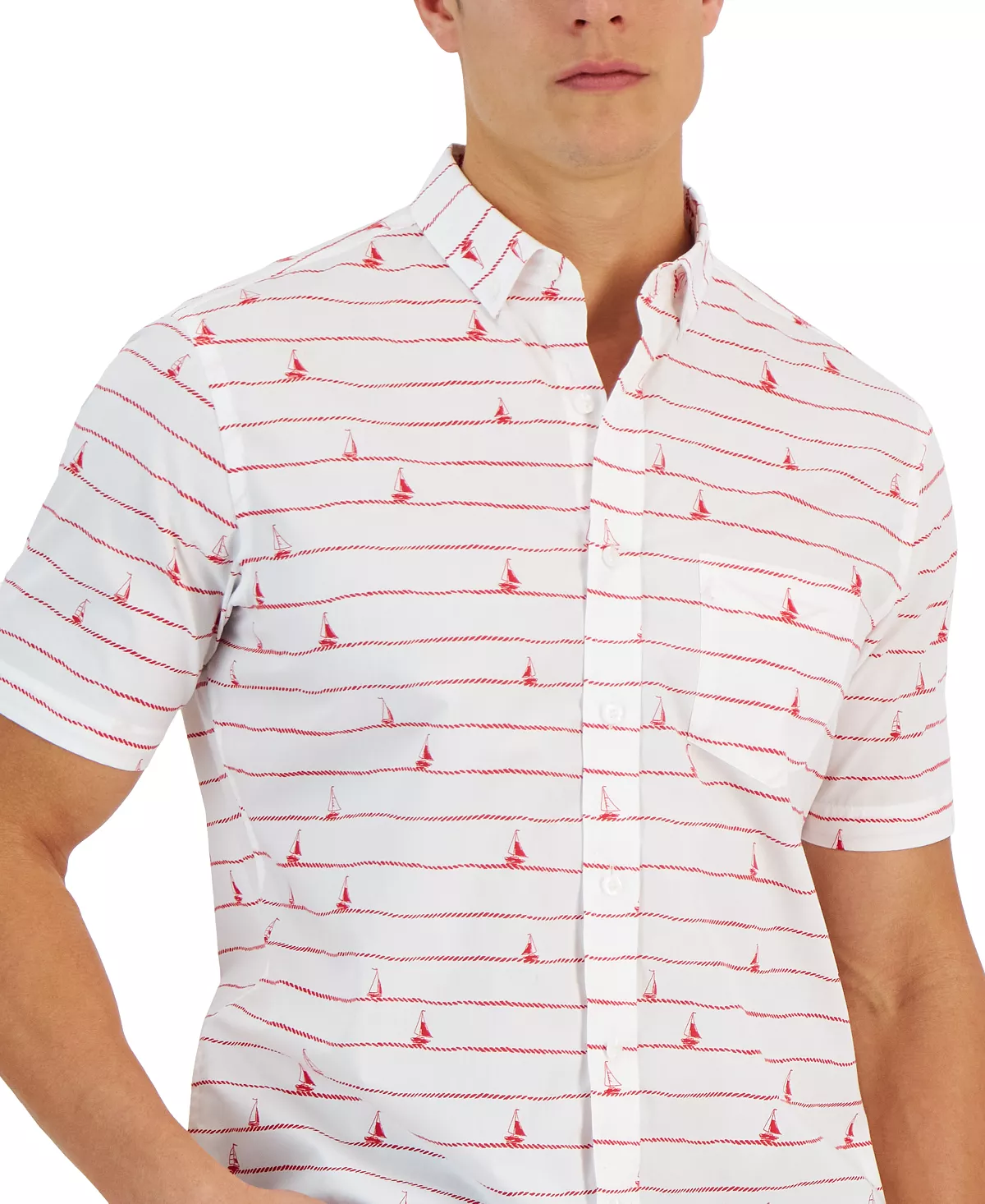 On land or sea, the ropes and sails print adorning this short-sleeve shirt from Club Room will keep your spirits up.