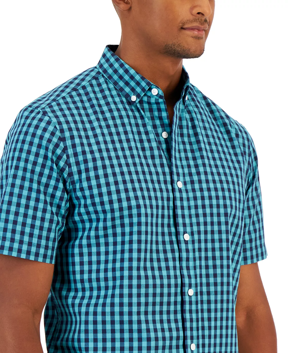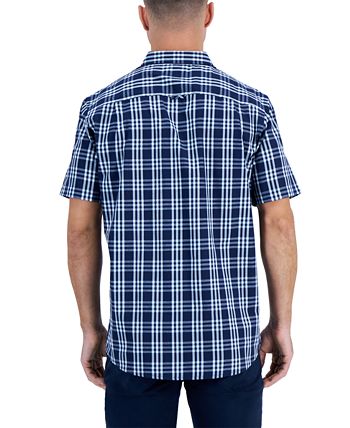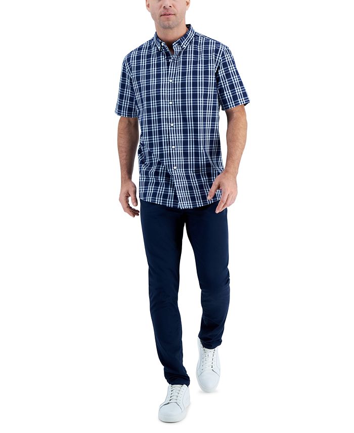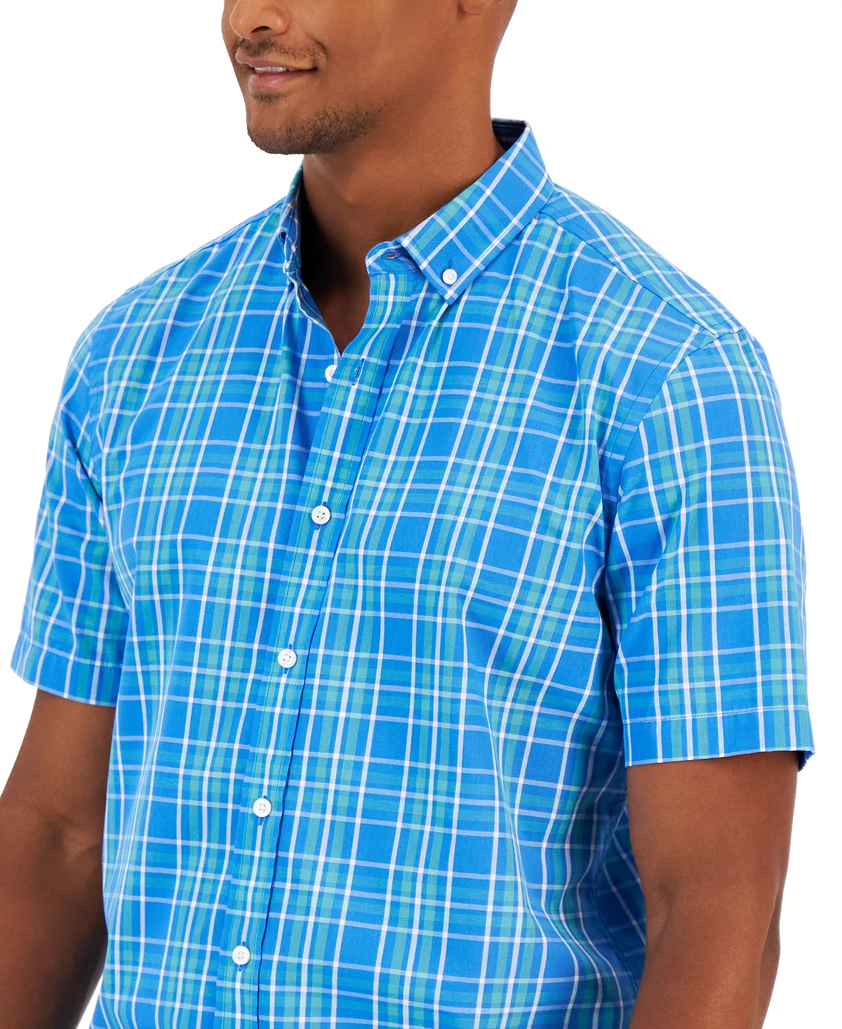 Dress up casual attire with the cool plaid print of this short-sleeve shirt from Club Room, featuring a classic button-down silhouette.