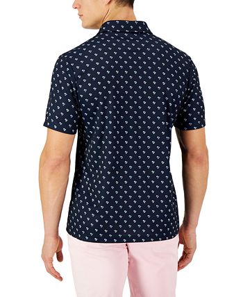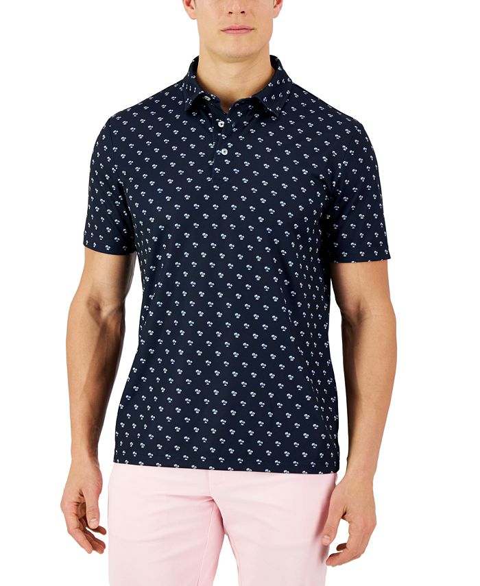 A short-sleeve polo from Club Room, showcasing an allover palm tree print, regular fit and soft knit fabrication.