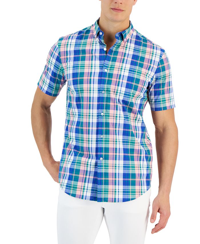 Club Room Men’s Moral Slim-Fit Plaid Button-Down Performance Dress Shirt, Created For Macy’s