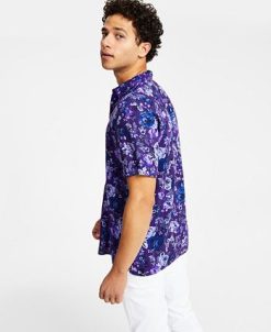 INC International Concepts Men’s Band Collar Button-Up Shirt & Satin Stripe Dress Pants, Created For Macy’s