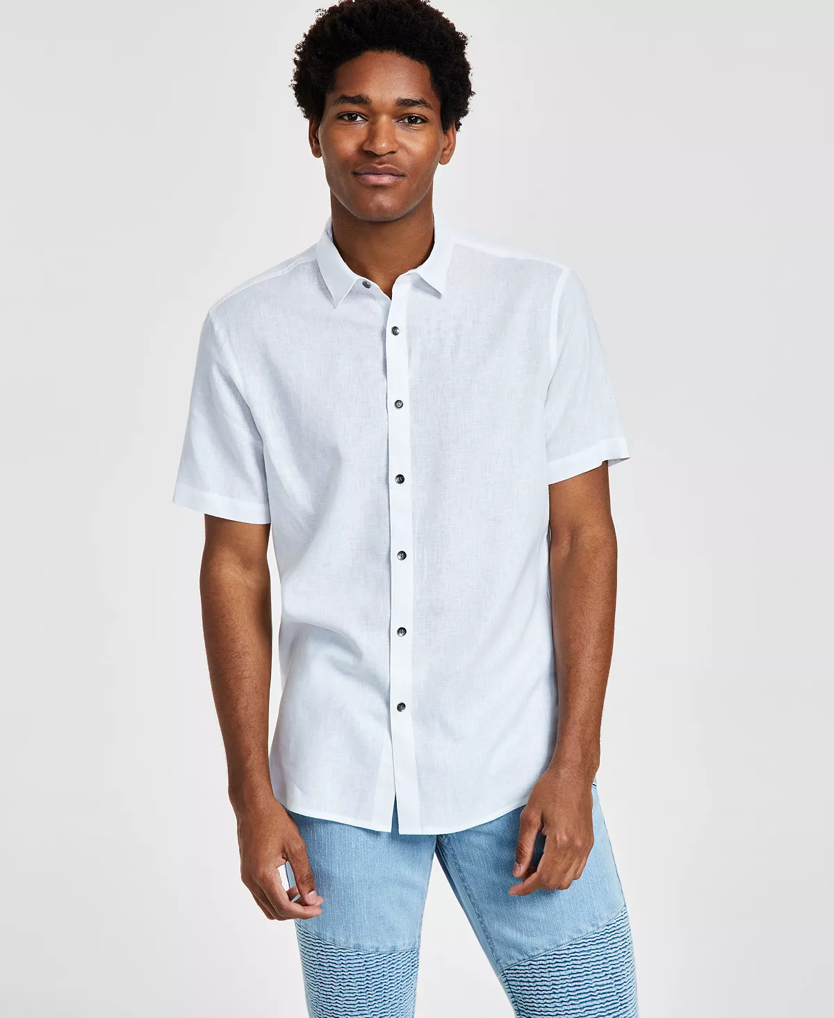 A classic fit and the crisp feel of linen make this shirt from INC International Concepts® a smart choice for warm-weather style and comfort;