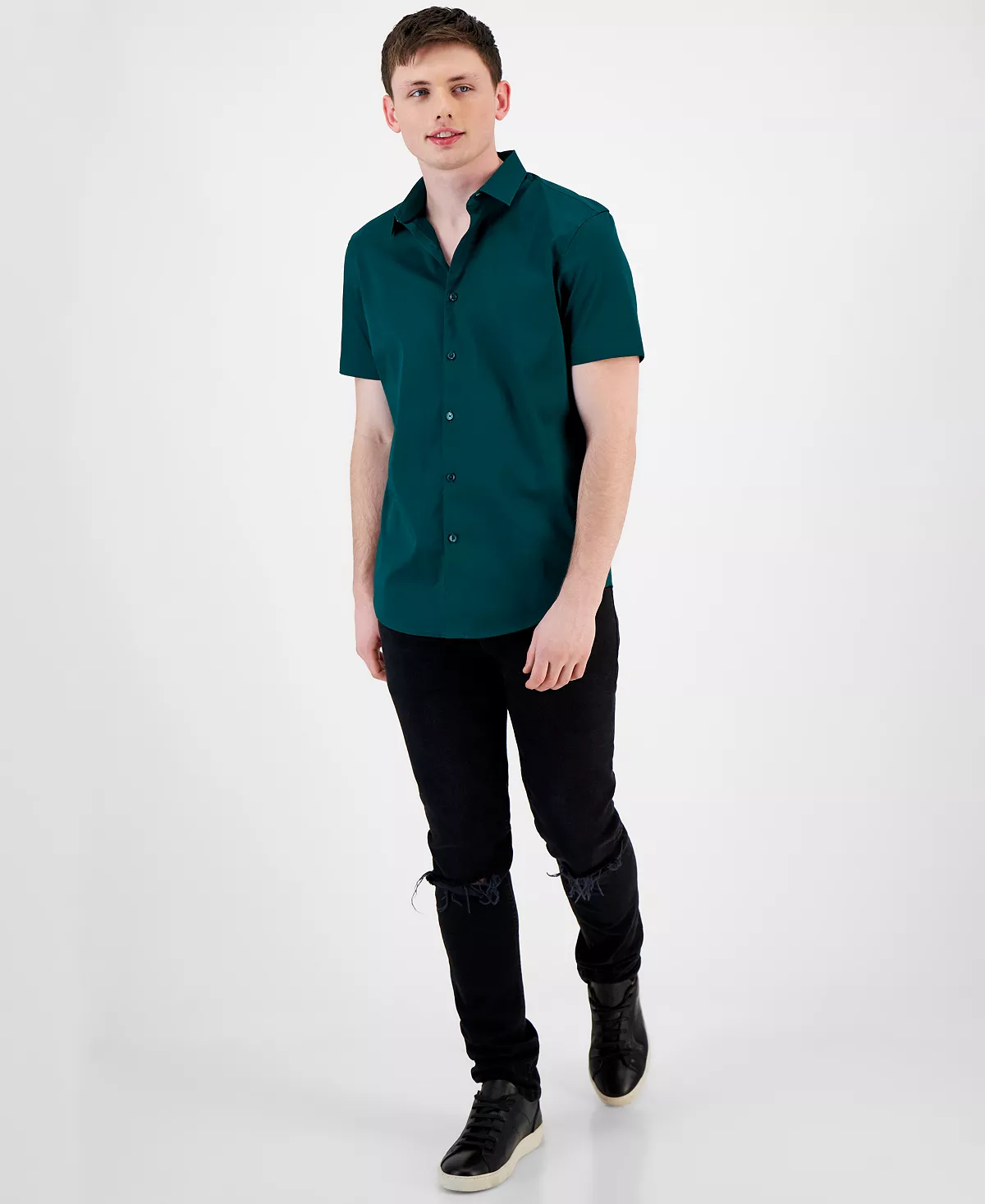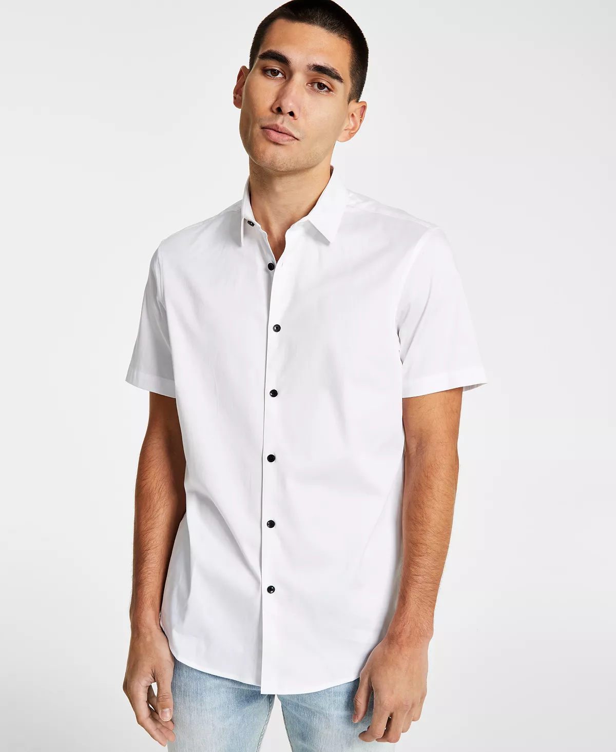 Styled with a classic fit and a point collar, this Tux shirt from INC International Concepts adds timeless appeal to your casual look.