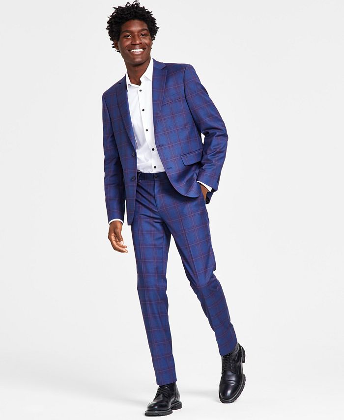 Show up for your next sophisticated soiree in style with the classic tuxedo shirt and slim-fit plaid suit separates showcased in this polished silhouette from I.N.C. International Concepts®.