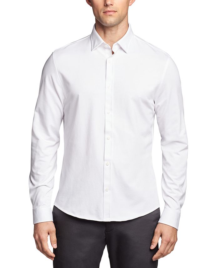 Michael Kors takes on business-casual styling with this dress shirt made from lightweight knit fabric. An easy choice for work or the weekend, the versatile shirt is finished with an extra-soft texture and features a shorter hem for a neat untucked look.