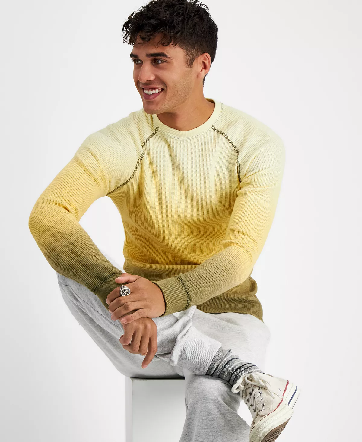 Keep your look on point with this dip dyed sweatshirt from Sun + Stone, in a classic crewneck style with topstitching detail.