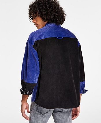 For a classic button-down with a contemporary twist, choose the pieced colorblocked styling of this comfy corduroy shirt from Sun + Stone.