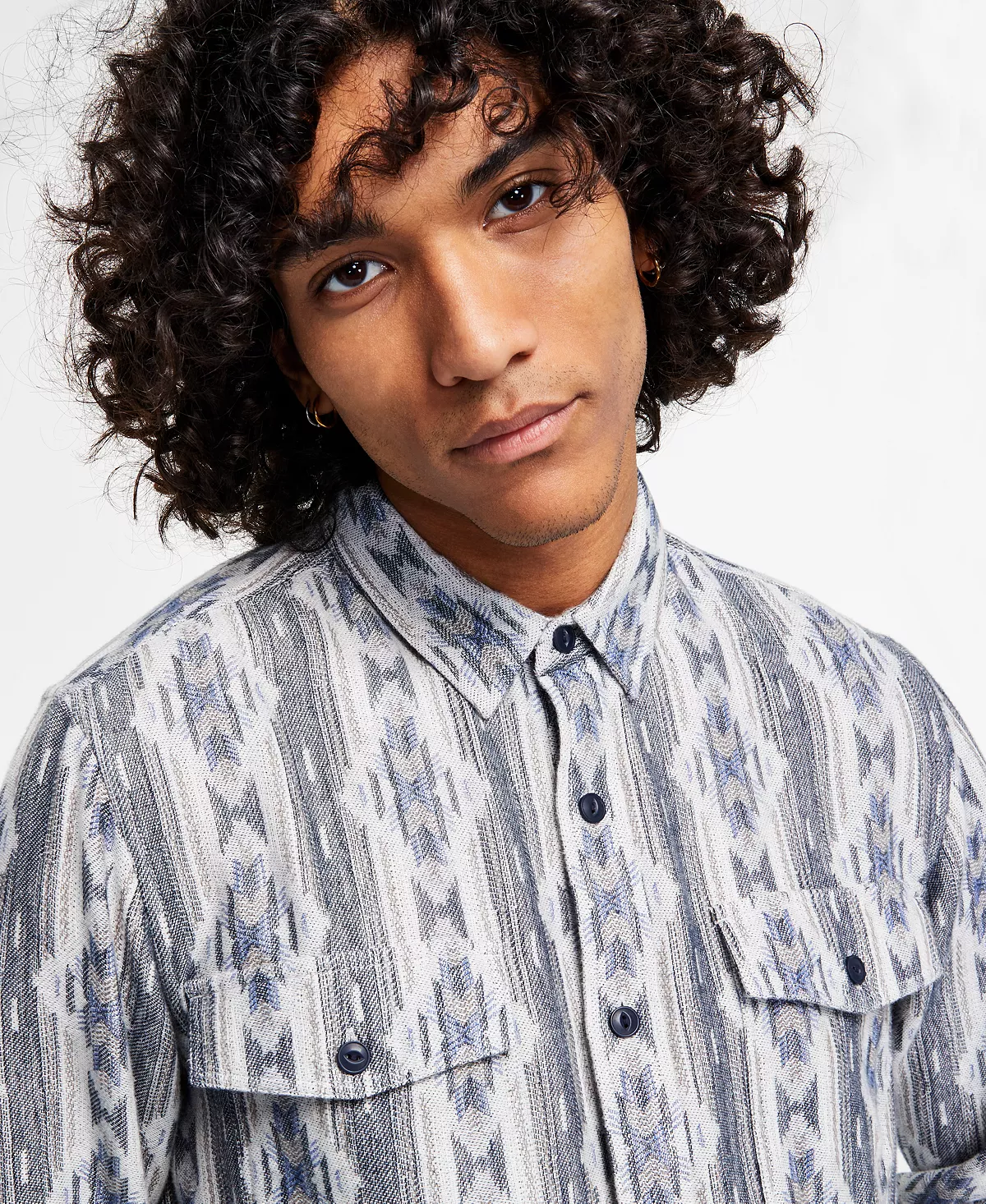 Upgrade your button-down look with the bold geometric jacquard of this Shaker flannel shirt from Sun + Stone.